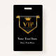 Classy VIP entry badges you can customise online designed as an editable template. Created with a gold tone upscale graphic emblem printed on both sides that says VIP for an upscale membership club, special event, or entry pass into private exclusive parties. Created for the entertainment industry, night life, or lifestyle and are available with a lanyard or clip on attachment. Make your guests feel special with these elegant badges.