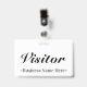This sophisticated badge design features the message "Visitor", and a customizable company name or other custom message. A badge like this could be used to identify that somebody at a workplace or business is an authorized guest/visitor. [~Z0000307]