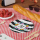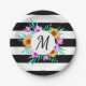 Beautiful paper plates with floral watercolor wreath on black & white striped background. Customise the monogram by choosing from many wonderful fonts.
