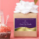 The design features a noble shimmery wavy gold decoration with soft glitter stars and a dark purple background.