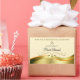 The design features a noble shimmery wavy gold decoration with soft glitter stars and a light peach background.