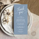 Add a personal and thoughtful touch to your wedding celebration with this modern classy romance wedding dinner place setting thank you card. Designed to be placed at each guest’s seat, this elegant piece of wedding stationery helps you express gratitude and create a warm, welcoming atmosphere. With its modern minimalist elegant classy dusty blue theme, it’s perfect for enhancing your wedding dinner, reception, or rehearsal dinner décor. Customise with your names, wedding date, or a special message to make it truly yours.