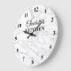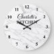 Classy white marble stone background texture kitchen wall clock design with numbers.