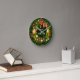 Decorate your home this holiday season with this classy wall clock featuring a gorgeous Christmas wreath with holly pine cones, luxurious ornaments, golden bells, silk ribbons, red bows, and poinsettias. You could also customise it with your own wording as a present for someone special.