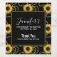 Birthday bottle labels with an elegant and stylish pattern. Pretty yellow sunflowers and green leaves surrounded by delicate gold chains. Black background.