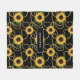 Classy Yellow Sunflowers Stylish Pattern on Black Fleece Blanket