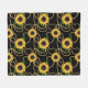 Classy Yellow Sunflowers Stylish Pattern on Black Fleece Blanket