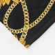 Blanket with an elegant and stylish pattern. Pretty yellow sunflowers and green leaves surrounded by delicate gold chains. Black background.