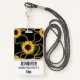 Classy Yellow Sunflowers Stylish Pattern on Black ID Badge