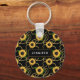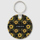 Classy Yellow Sunflowers Stylish Pattern on Black Key Ring