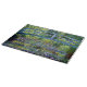 A charming classic glass cutting board featuring a bridge over a pond of water lilies, painted by the French impressionist painter Claude Monet.