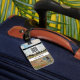 I was happy with the acrylic tag but it came with a thin leather strap to attach the tag to luggage (like a cat collar). I replaced the strap with a metal ring off of a key ring as the leather strap would come undone or break easily as luggage is sometimes handled without much care by airlines. Printing is great. Colours and positioning of the design I put on the tag were perfect. Very pleased.