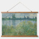 Claude Monet set of 2 old famous French paintings including "The Japanese Footbridge" and "The banks of the Seine" from the 1800s. Printed on a wood-framed wall-hanging tapestry. CCO license, public domain art.