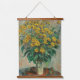 Set of 3 old famous Claude Monet paintings from the 1800s. This pack includes the printed art: woman seated under the willows, the artist's garden at Vetheuil, and Jerusalem artichoke flowers. Printed on a wood-framed wall-hanging tapestry. CCO license, public domain.