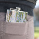 The flask itself is fine. It’s a cheap flask, obviously bought in bulk, however am prepared to overlook that. Given that it is a personalized item, I would have liked to have seen gift boxing instead of the generic packaging. Terrible printing, and/or quality. It’s a cheap, tacky vinyl. It is not cut straight and is also applied in a way that it is overhanging the bottom, causing the glue to catch on items and it will eventually roll and tear, damaging the wrap.