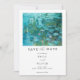 Elegant modern wedding save the date card featuring Claude Monet Water Lilies painting