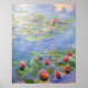 Water Lilies by French Impressionist Claude Monet. Monet did a series of 250 paintings featuring water lilies. The paintings depict his flower garden at his home in Giverny, and they were the main focus of his artistic production during the last thirty years of his life.