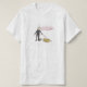 Claude seeks company by purchasing a dog. T-shirt reads 'Claude's purchase of a pet for company ended in failure'