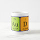 Claudi spelled out as Cl Au D I (Chlorine Gold Deuterium Iodine) on a mug for the scientist in you.