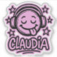 Emoticon with extended tongue and headphones and the name Claudia. The colors can be adjusted in the Design Tool.