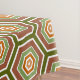 Hexagon tablecloth pattern in brown and orange and green tones.