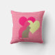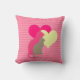 Two cat silhouettes, one clay coloured, the other hot pink, and two hearts of cream and hot pink on a chevron striped pink background. This pretty cat design throw pillow is perfect for anyone who loves cats, looks great in the bedroom, living room, rec room, playroom!