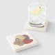 The coasters are gorgeous, a quality feel and heavy weight. They look like a precious archeological find. A rustic stone juxtaposed with a modern floral black and white print. I like the way the print goes slightly imperfect on the cut stone edges giving them a kind-of natural beauty.