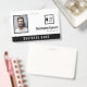 Office employee badge with a clean minimalist design in black and white. Add a photo of the employee along with name and profession. Personalise further with your business logo and the name of the company.