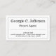 This plain, clean, and customisable business card design features a white background, a double-line border, and a decorative row of diamond shapes. It could be used by a legal professional such as a patent agent, solicitor, lawyer or advocate. The name, profession and contact details can be personalised.