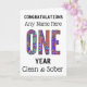 One year hand drawn Clean and sober card for sobriety birthday, anniversary. Choose any name and background colour or design.