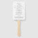 Modern wedding program hand fan featuring a simple yet elegant design with serif and script fonts.