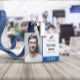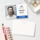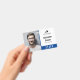 Employee ID badge with a clean minimalist design in blue, black, and white. Add a photo of the employee along with name and profession. Personalise further with your business logo.