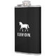 The flask itself is fine. It’s a cheap flask, obviously bought in bulk, however am prepared to overlook that. Given that it is a personalized item, I would have liked to have seen gift boxing instead of the generic packaging. Terrible printing, and/or quality. It’s a cheap, tacky vinyl. It is not cut straight and is also applied in a way that it is overhanging the bottom, causing the glue to catch on items and it will eventually roll and tear, damaging the wrap.