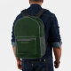 This backpack showcases an elegant dark green leather texture, exuding sophistication and timeless style. Accentuated by a beautiful gold script print, it combines luxury with functionality. Ideal for both professional and casual settings, it offers a chic, refined look while providing ample space for your essentials.