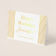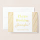 This respectable gold foil birthday greeting card design features the message "Happy Birthday" on the front, and a name that can be personalised. There is a customised message on the inside. It could be given to somebody to wish them a happy birthday.
