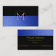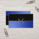 Clean Elegant Monogram Blue Faux Leather & Black Business Card