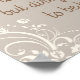 This pretty word art design features a tan background, almond coloured floral swirls and text that reads, "Our house is clean enough to be healthy but dirty enough to be happy".