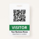 Vertical visitor badge with a qr code, VISITOR in clean white letters against a green stripe, and your business name and department or location. All text is customisable. Green and white QR code visitor badge for your business.