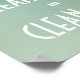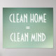 Clean home equals clean mind cleanliness poster. The saying is printed in neat white lettering against a dark green background. Promote cleanliness and it's benefits to mental health and well being with this simple and effective cleanliness poster.