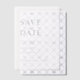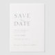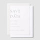 This wedding save the date invitation features a clean and elegant minimalist design. The front showcases a modern mix of serif and script fonts on a white background Vellum paper.