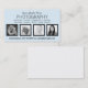 A quick and easy business card that can be customised to suit any business or profession. Sleek charcoal grey text and photo frames with a simple white background. Several text fields that can be personalised for your own needs. Unisex design without frills so it suits both male and female professionals. Background colour can easily be changed to any pale colour using the advanced customisation options. Shown with a crisp icy blue pastel shade. All sample placeholder photos are public domain or purchased images for example only and must be replaced with your own.