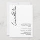 A black and white wedding cancellation announcement in a clean, minimalist, no nonsense design with a rough signature script to inform your guests that the wedding will no longer happen.