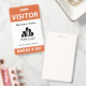 Vertical visitor badge with a simple design in orange and white. VISITOR is written in bold white letters against an orange background to be easily visible. Add your business name, logo, and branch. At the bottom, the badge number.