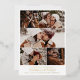 Elegant and practical informal wedding invitation with a photo collage of five photos on the front and a sixth photo on the back. White photo collage wedding invitation with your names in gold foil. Practical wedding invitation with the information easily available on the front with room to add a link to your wedding website on the back. Minimalist photo collage wedding invitation personalised with your names in gold foil. White and gold wedding invitation with a photo collage and minimalist wedding wording.