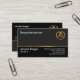 A simple plain retro card with a gold demarcation line separating the grey column from the black one below. In the grey space, at the upper left corner lies the business option "Limousine Service" ; This option is customisable and you can change it to suit your type of transport business. Over in the opposite direction you have the faux gold logo of a chauffeur. In the black column, there is your prestigious name and job title with the contact details at its right end.