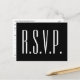 This clean, respectable R.S.V.P postcard design features the message "R.S.V.P." on the front. It also features a customisable RSVP form on the back, along with a customisable address that the completed RSVP cards would be mailed to. RSVP cards like this could perhaps be used to find out who will be attending a retirement party, a wedding shower, a wedding anniversary party, or some other celebration.