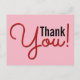 This respectable thank-you postcard design features the message "Thank You!" on the front, along with a customised message on the back. It could be used to offer thanks to somebody who has done a special deed.