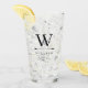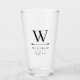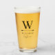 Monogrammed beer glass for your best man with his initial atop his name in a simple, minimalist design and his role in the wedding party in a casual script.