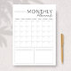 Crisp white clean custom monthly planner NOTEPAD. This perpetual calendar features a trendy and modern set of contemporary fonts. Add and change days, reminders, notes and goals as you prefer. Not happy with what you wrote or planned? Simply tear out a page and start again.