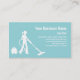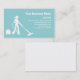 Business card with an iconic silhouette of a professional cleaner in shades of blue green and purple.